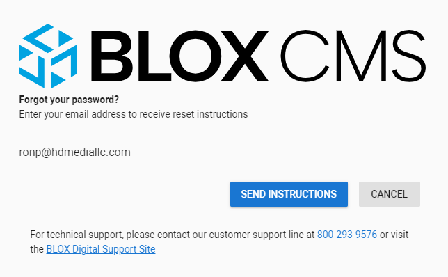 To login, most who have not had any experience with Hosted BLOX (Blue BLOX) will need to reset their password.