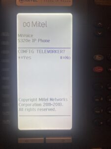- Press # to skip the protcol screen and then press * when you see Config Teleworker.