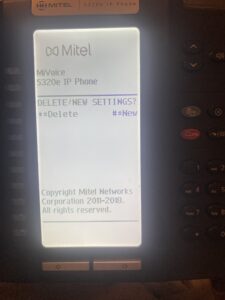 - Press the up arrow on the phone to save the settings and after it is saved pull the power to reboot and it should connect.